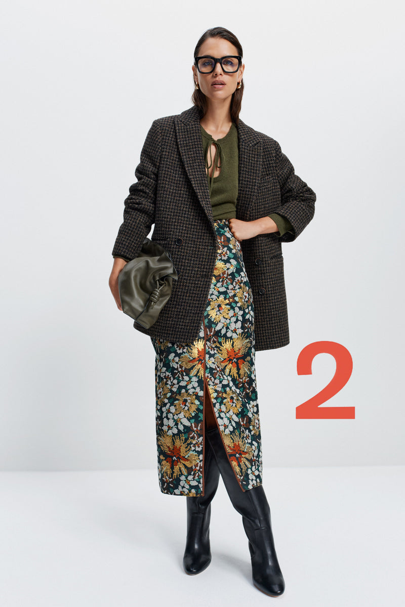 Style with the matching skirt for full impact, or pared back with pants or denim for a more casual look.