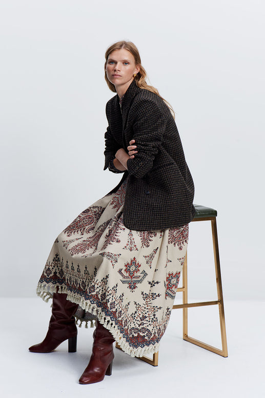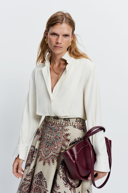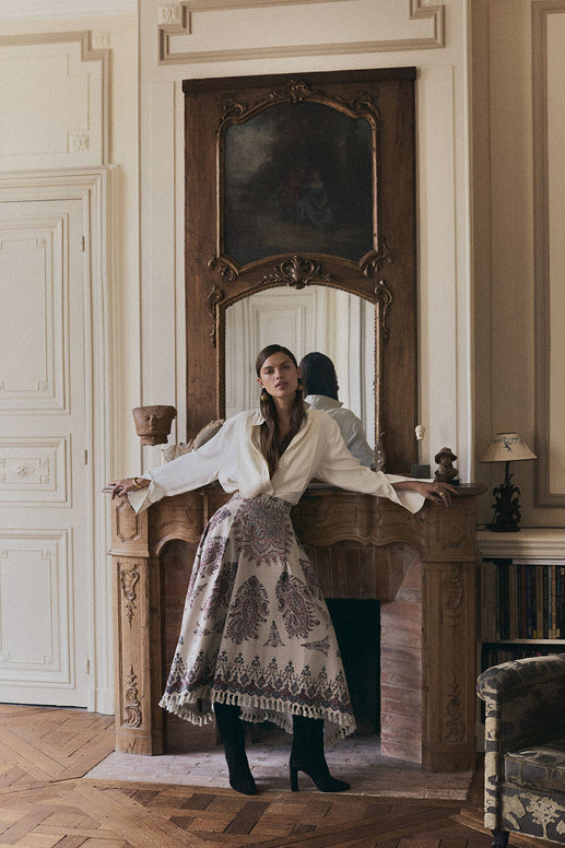 A collection that feels like stepping into an intimate Parisian apartment — considered, lived-in, and full of quiet luxury. Soft knits, fluid silks, and structured cottons come together to create a palette of warm neutrals. These are the pieces you’ll return to day after day.