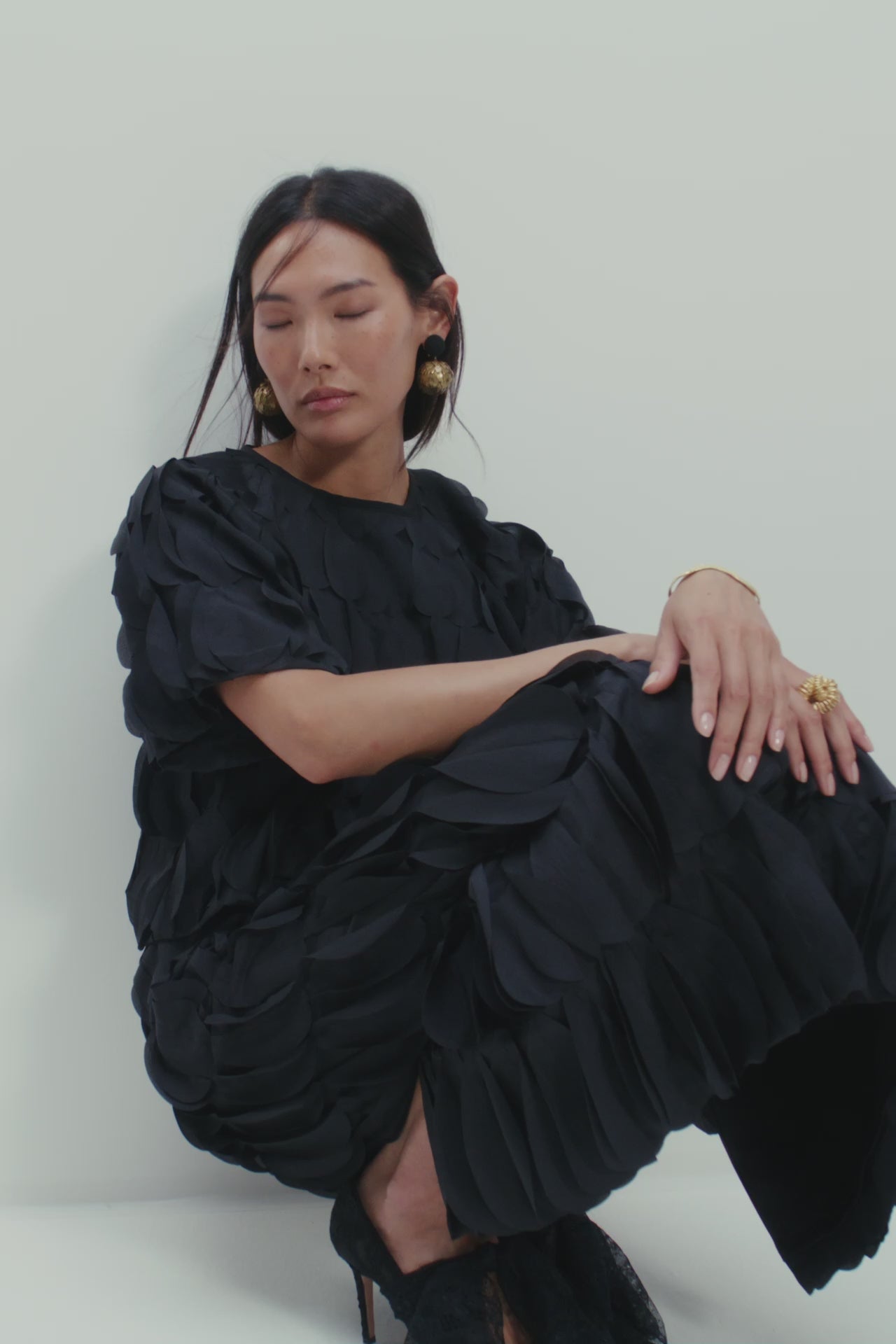 The Bowery Skirt brings texture, drama and movement to a timeless silhouette. Falling to a flattering midi length, it cascades with scalloped shaped crepe layers that flutter as you move. A grosgrain fixed waistband and a back slit feature. Wear with the coordinating top for a head-turning set, or let it be the focal point with a crisp shirt.