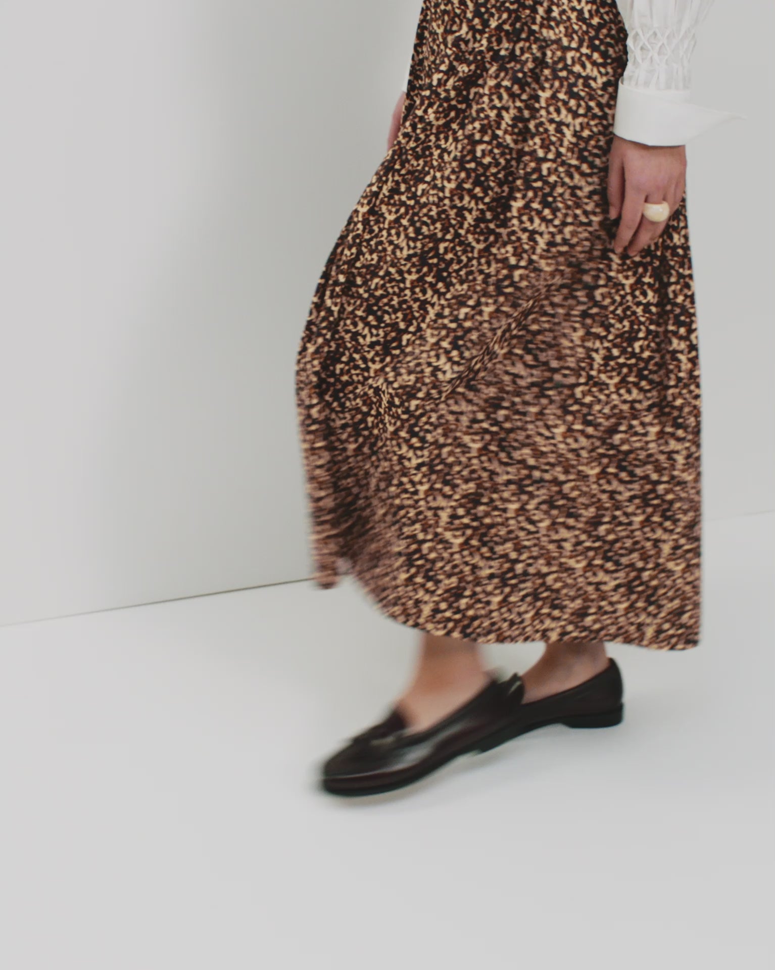 The Friday Skirt returns in our newest tortoiseshell print – a refined expression of artisanal character and bohemian ease. Treated as a neutral, the print integrates effortlessly into your existing kit.