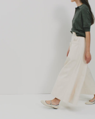 The Gaucho Jean draws inspiration from our best-selling Gaucho Skirt, reimagined as a dramatic wide-leg silhouette. Crafted from structured yet fluid ecru denim, it combines voluminous proportion with everyday ease.