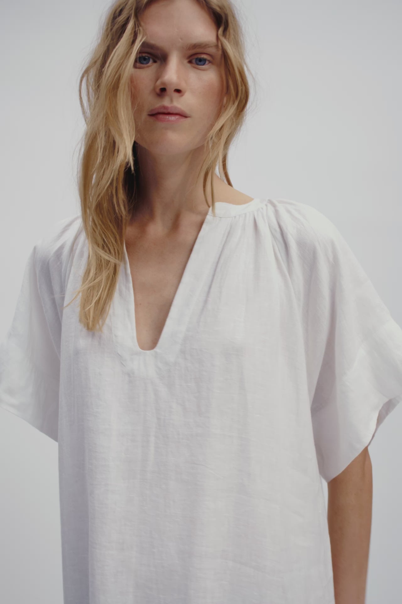 Timeless, easy, and endlessly versatile. The Ithaca Dress is crafted in airy white linen with a softly structured silhouette that dances between nonchalance and elegance. The wide sleeves and deep v-neckline evoke a laid-back sensuality, while the detachable rope belt gives you the freedom to shape it your way, waist-cinched or beautifully undone. It's the kind of piece that looks just as effortless barefoot in the garden as it does styled up for the city. A quietly powerful staple you’ll reach for all summer long.