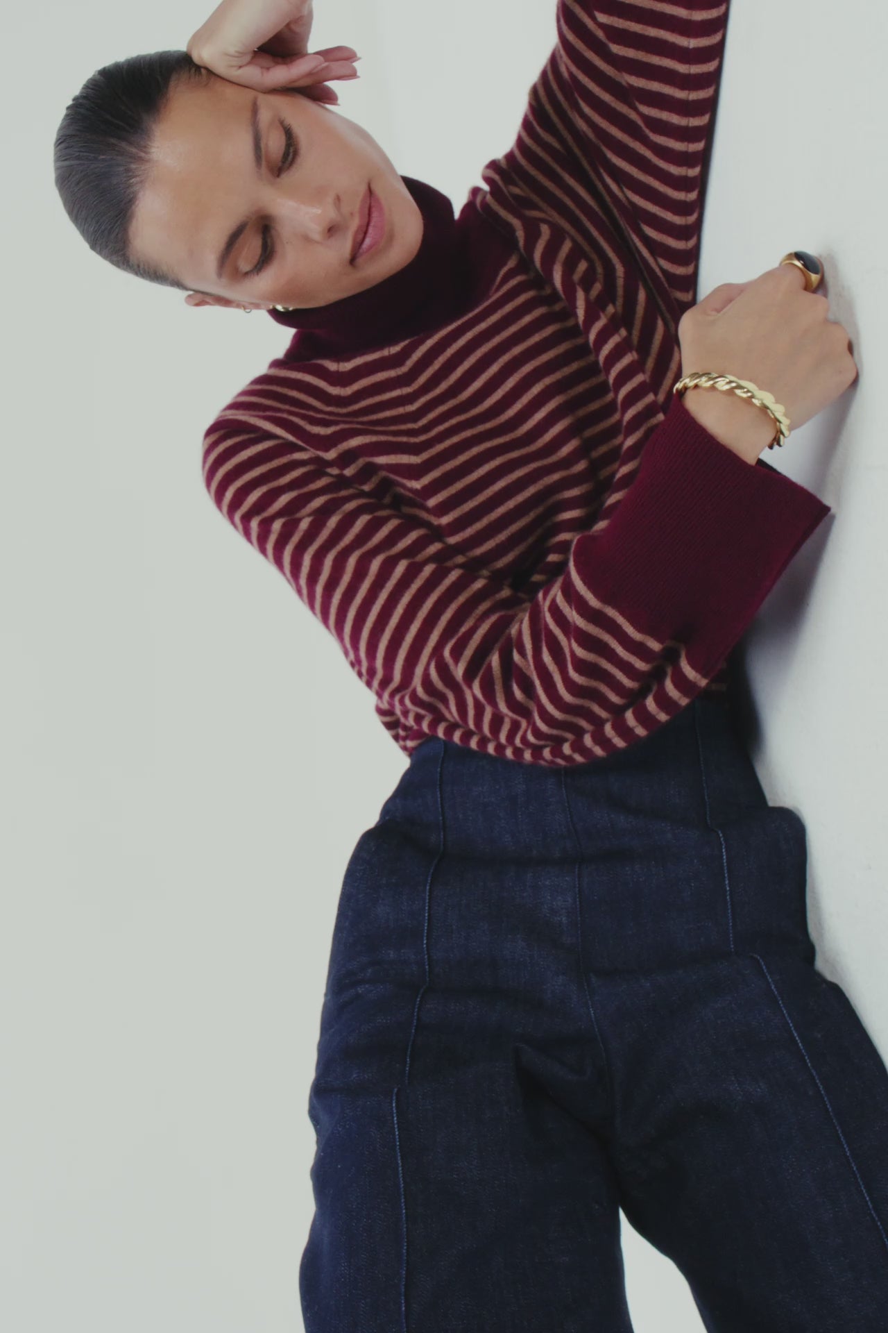 The Prep T-Neck is a modern nod to a classic marinière, crafted from a luxuriously soft, cashmere merino blend. In rich burgundy with fine camel stripes that frame the shoulders, its turtleneck, “easy hang”, and subtly elongated sleeves make it a polished and easy to wear layer, that gives this wearable style a WK point of view. Style under a blazer or with denim. A timeless knit you'll reach for season after season.